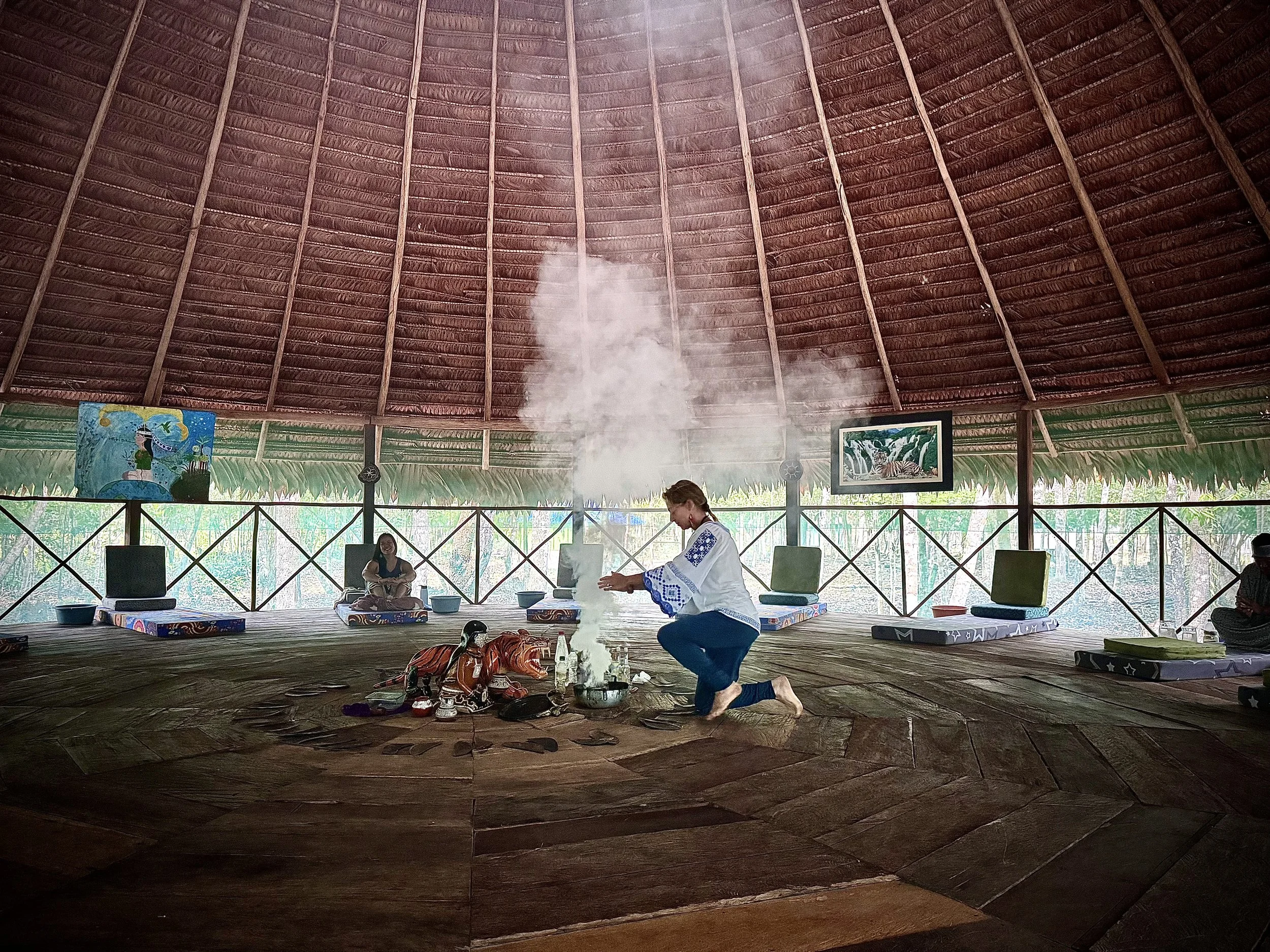 Intention setting meeting with the shaman and daily health coaching circles with Courtney for psychosomatic experiencing, grounding, and integrating